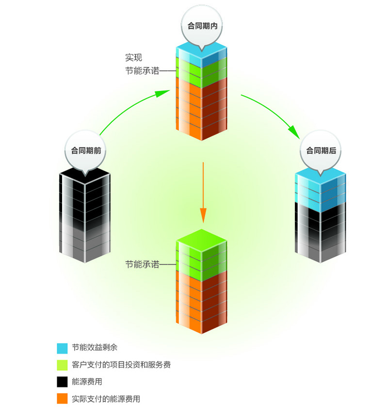 合同能源管理是在完全的市场经济条件下发展并完善起来的、全新社会化服务理念。其特点是由专业化的节能服务公司解决客户在开展节能减排过程中存在的问题,如缺少资金、节能技术、专业人员及管理经验等,帮助其实现节能减排目标,提升节能装备水平,用节约下来的能源费用支付项目成本、增加效益,从而让客户把更多的精力集中于主营业务的发展。